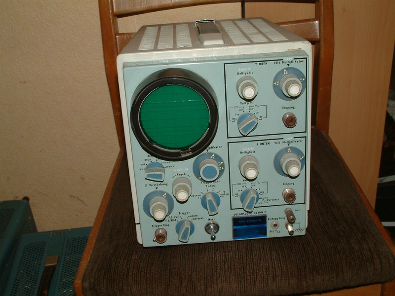 kürzlich auf einem Forentreffen, da stand dieser arme Solartron. Er ist geplündert, d.h. die Röhren fehlen. Ansonsten sieht es ganz nett aus, da ist mit wenig Aufwand was zu machen