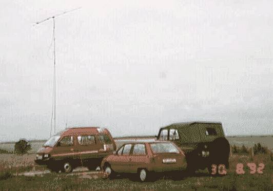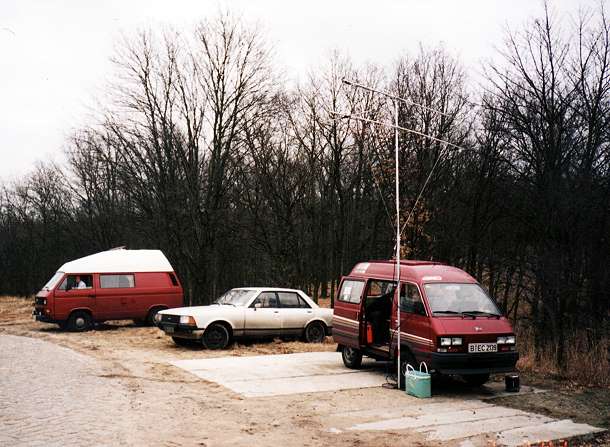 hier noch ein "Beweis-Foto" von meinem Mastfuß an meinem rollendem Amateurfunk-Büro (1992). Das war auf dem Rhinower Berg bei einem UKW-Contest. Mit dabei war damals unserer ehemaliger Moderator DL7RR: