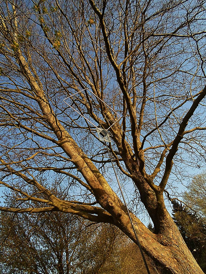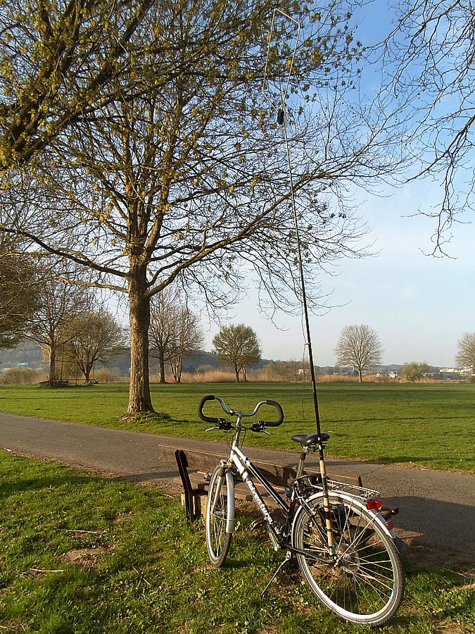 6,80 Meter hoch, aber oben abgespannt, wegen des Winddrucks. Bei einer 7 Meter Angelrute für eine Drahtantenne wäre das aber nicht nötig.