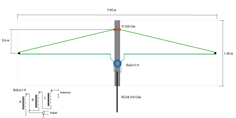 Balun 1:9. Die erste Proben haben nicht schlechte Eindruck gemacht. Das ist eine Breitspur Antenne und die bedeck praktisch das ganzes KW-Bereich.