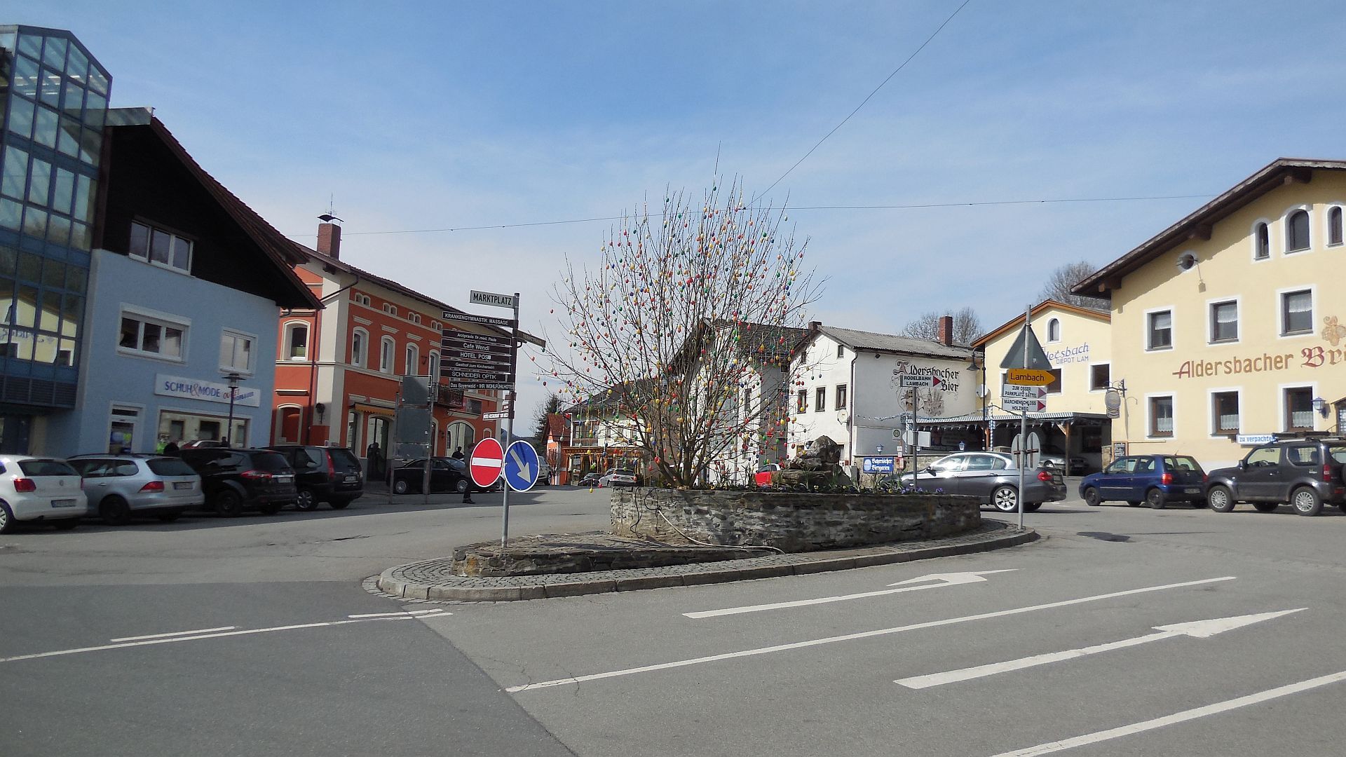 im Kurzurlaub zu Ostern war ich mal wieder im Bayrischen Wald. In LAM gab es einen wunderschön geschmückten Brunnen, von dem ich Aufnahmen gemacht habe. Als ich mir zu Hause die Bilder anschaute fiel mir erst die Leitung auf, die ich erst für eine Spannungsversorgung gehalten hatte. Wenn man allerdings genauer hinschaut, dann erkennt man direkt über dem Brunnen eine grosse gespannte 2-Element Antenne.