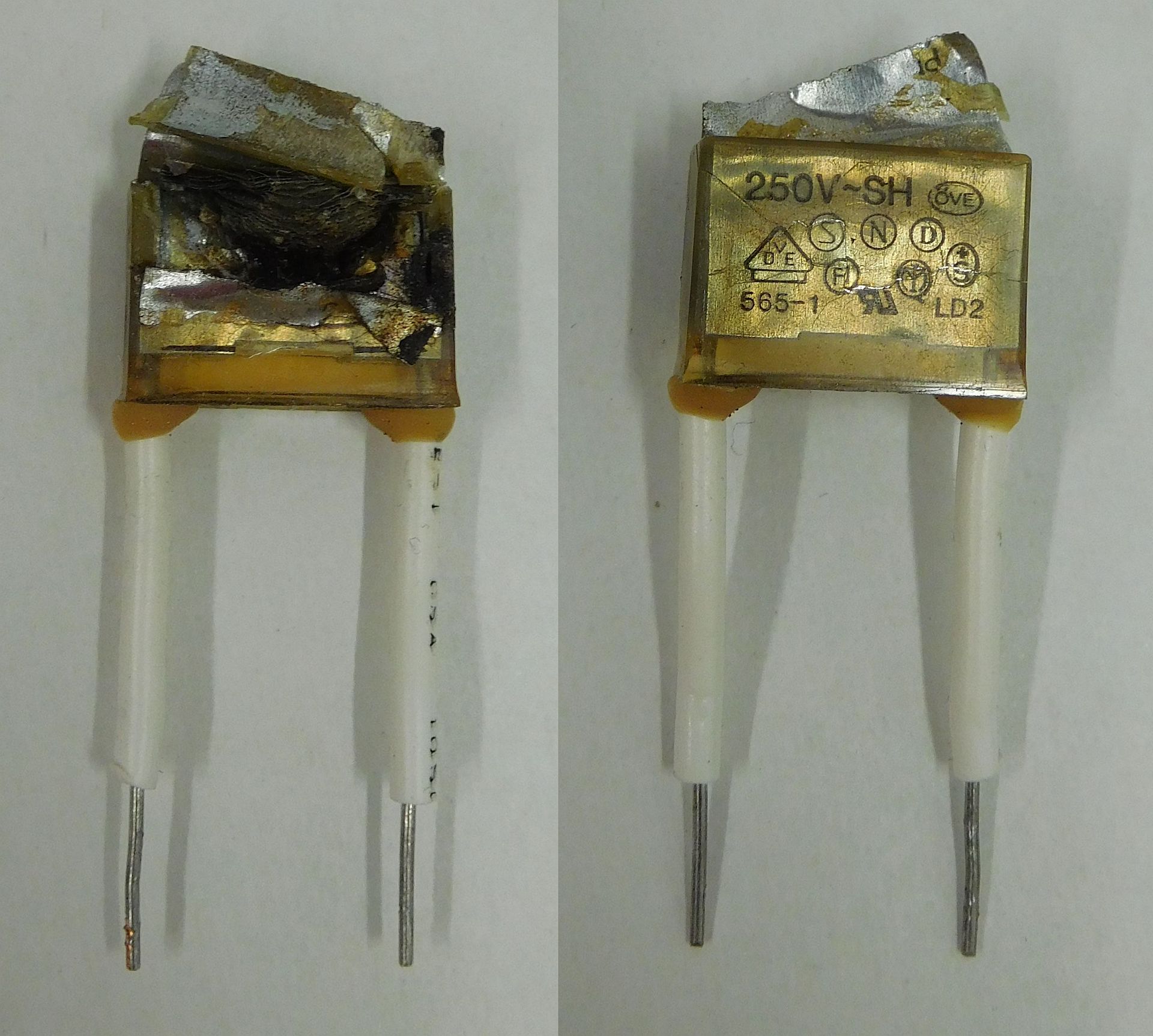Fachlich glaube ich ihm allerdings leider kein Wort - für mich sind das rissige Kondensatoren, die ich niemals nicht an Netzspannung anlegen würde.