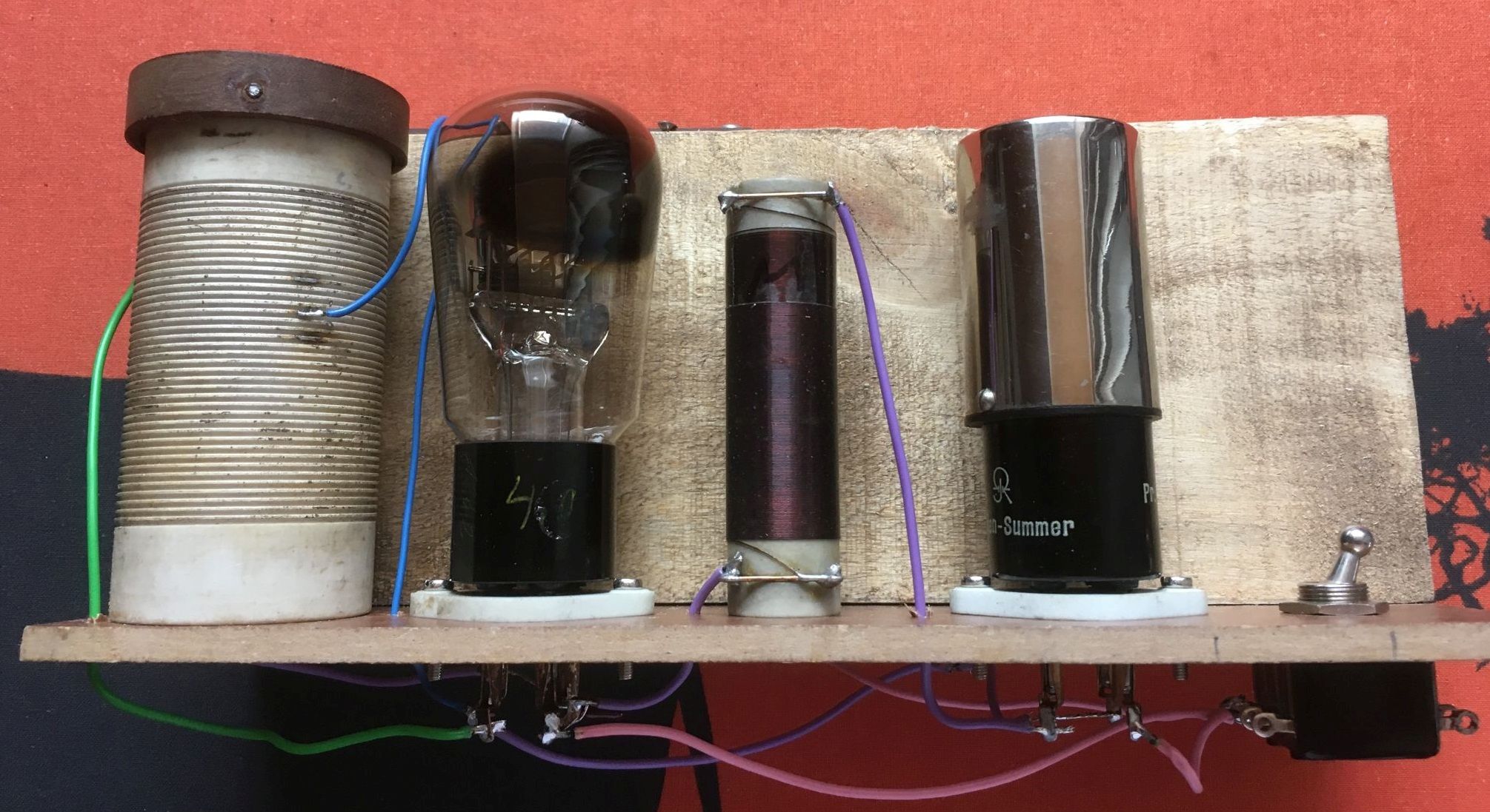 ja, es ist ein Eintaktwandler mit zwei galvanisch getrennten Wicklungen und einem Übersetzungsverhältnis von 1:50. Es hat mich nur interessiert, ob der Mikrosender von Kappelmayer tatsächlich in seiner Minimalkonfiguration funktioniert hat. Ich habe nur die Variante ohne zusätzliche Rückkopplungs- wicklung und einem 100pF Kondensator zwischen Anode und Antennenanschluss probiert.