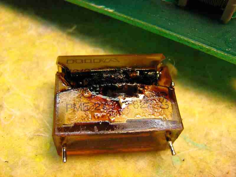 Dieser hier war am Netzeingang der Power Supply Platine eines Philips-Oszilloskops abgeraucht. War 'ne richtig chicke dicke Qualmwolke, die da durch die Werkstatt zog.