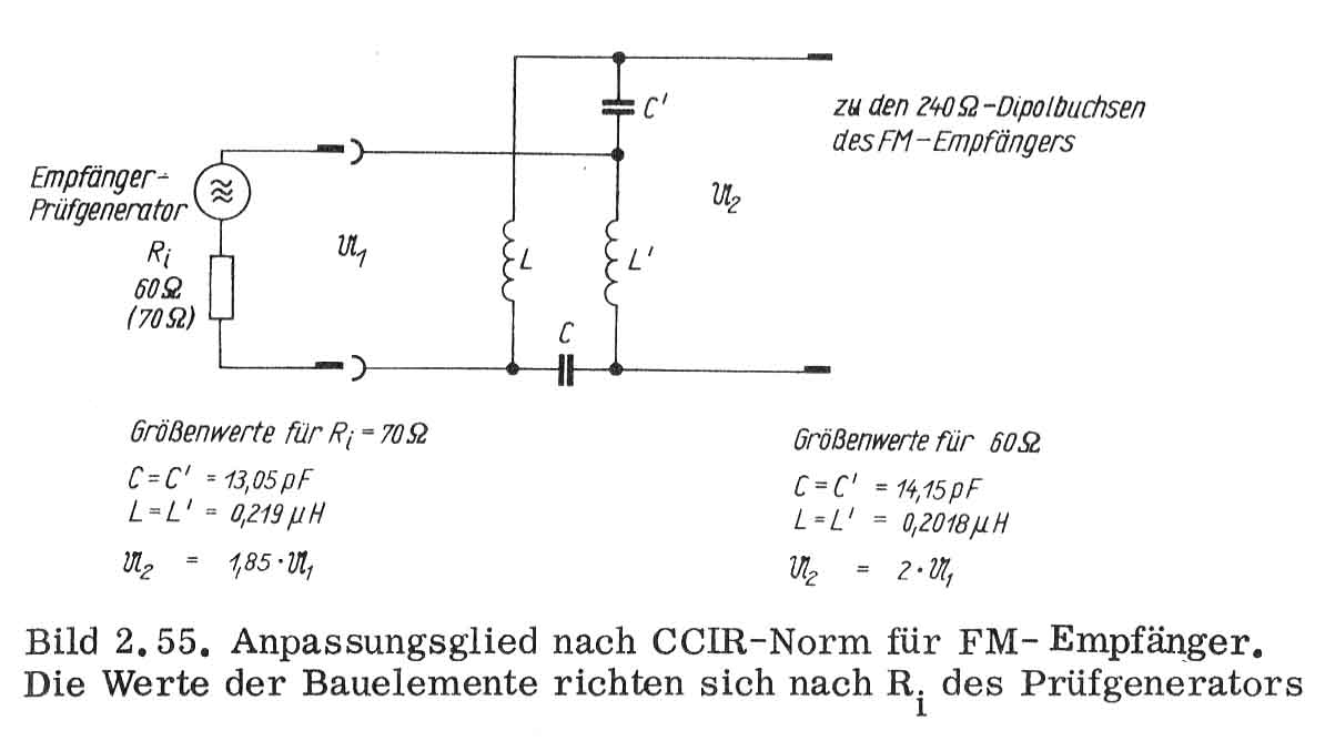 Man müßte schon sehr genau arbeiten, damit die gesamten Toleranzen aller beteiligten Bauelemente geringer bleiben als der Unterschied von weniger als 10% in den L- und C-Werten für 50 bzw. 60 Ohm. Hinzu kommt, daß man im Frequenzbereich um 100 MHz nicht mehr davon ausgehen kann, daß man hier noch konzentrierte Induktivitäten und Kapazitäten vorfindet. Die Eigenkapazität der Spule und die Eigeninduktivität von Kondensatoren wären nicht mehr vernachlässigbar, wenn es um vier Stellen nach dem Komma ginge.
