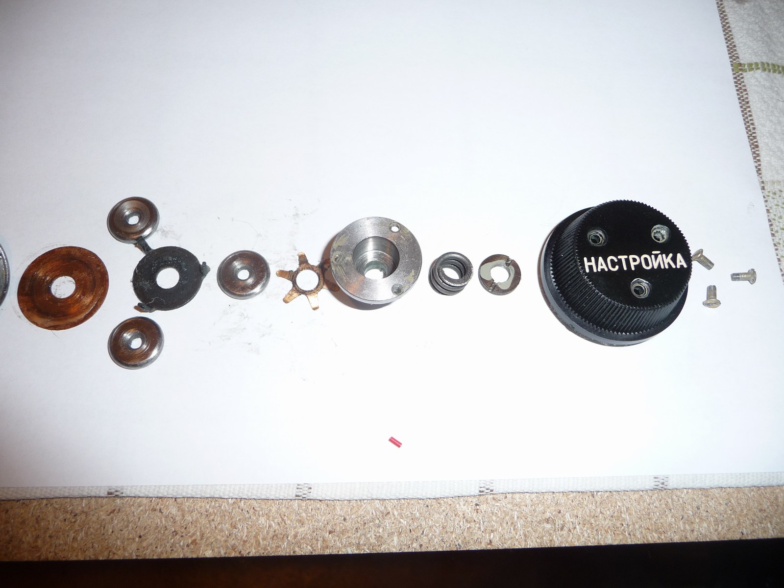 Na ja, sooo schlimm ist es nicht, den Nastroika zu zerlegen. Ist eben robuste russische Technik. Nichts dabei, was irgendwie davonspringen kann, oder was sich nich wieder problemlos in seine angestammte Position setzen lässt. Mehr als etwas Geduld und eine ruhige Hand braucht man eigentlich nicht. Eine alte Skalenscheibe um die Zahlen/Buchstaben herum zu putzen stelle ich mir langwieriger vor...