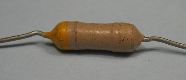 hier ein unbekanntes Bauteil von etwa 15 mm Länge, mit dem mein Bauteiletester nichts anfangen kann. Die beiden Anschlüsse scheinen demnach nicht verbunden zu sein: