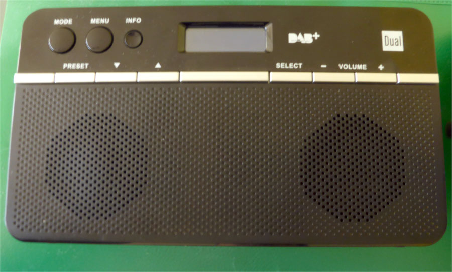 hier ein weiteres kleines Radio für DAB+ und UKW. Hersteller ist Dual, Model Dual18. Es war mein erstes Digitalradio zum Testen des Empfangs an meinem Standort. Über die Empfindlichkeit auf beiden Bändern kann ich nicht klagen. Es macht seinen Job ganz gut und kann über Batterie betrieben auch mal mit an den Badesee.