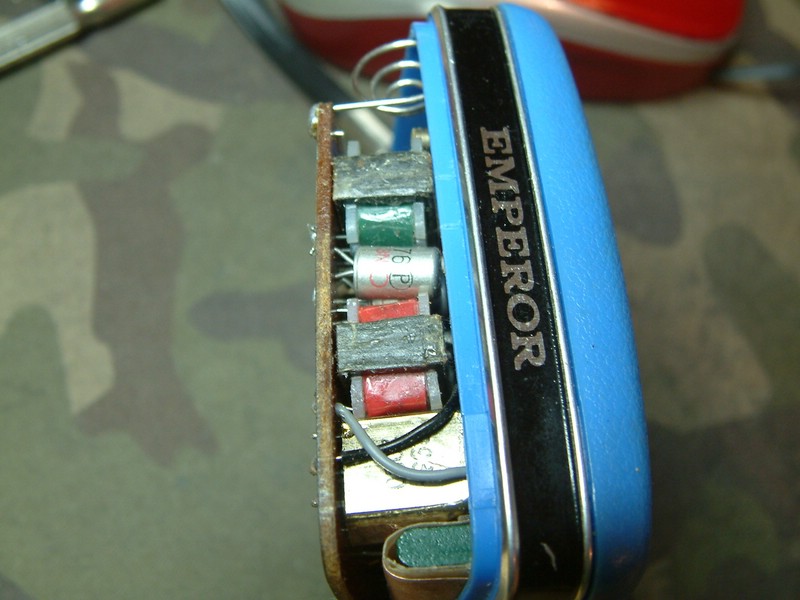 ich wollte es nicht ganz demontieren da bei diesen Radios der Drehko an der Front verschraubt ist, und darüber wurde die Frontplatte, Skala verklebt. Daher nur ein Blick in die Seite. Dieses Radio hat 2SB176 in der Kleineisenendstufe, bei meinem gelben waren es 2SB56, weis ich noch genau. 1972
