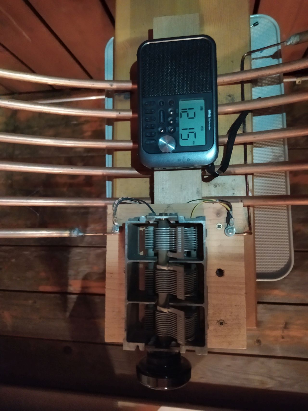 hier verwende ich einen Grundig Concertboy. Östlich von Dresden hatte ich einen kleinen Sylva Schneider Modell WE212 dabei. Das Gerät habe ich jetzt mal in meine Sechsfach-Loop gelegt uns siehe da, ich kann den Sender jetzt (wenn auch zeitweise schwach) empfangen. Übrigens, die Einkopplung geschieht induktiv über die eingebaute Ferritantenne (siehe Bilder).