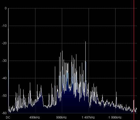 Dem DVB-T-Stick ist ein Up-Converter vorgeschaltet, der mit einem Ringmischer versehen ist, welcher unter 500 kHz eine höhere Dämpfung hat. Von Messung kann bei mir also keine Rede sein. Man sieht nur, dass da was ist.