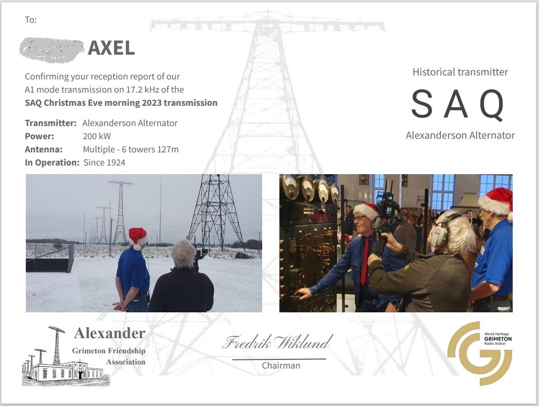 Hallo zusammen Ich konnte SAQ hier in OWL bei nicht unerheblichem Regen, bei mir im Garten brauchbar aufnehmen. Empfangen habe ich mit dem Handgerät nach DJ1WF. Ich musste einige Male etwas nachregeln. Ich weiß nicht ob das an SAQ oder meinem Empfänger lag.