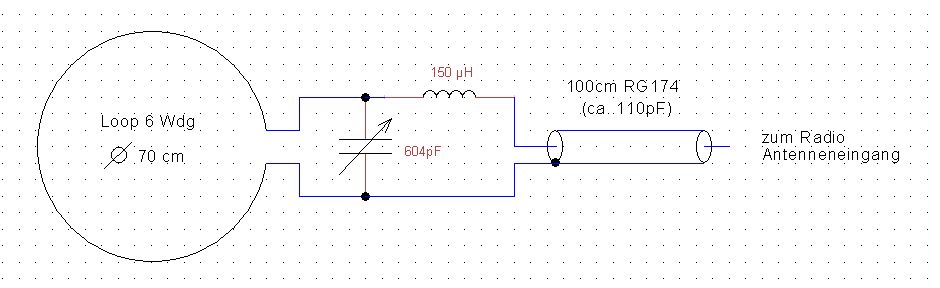 Der Empfang ist gut, obwohl die Anpassung nicht stimmt. Nach meiner Berechnung sollte die Loop eine Induktivität von 40,18uH haben. XL wäre dann etwa 307 Ohm.