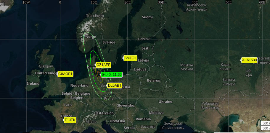Ich hatte einen brauchbaren Empfang in Helsinki. Es gab noch andere Empfangsbeobachtungen in Finnland. Die Wellenausbreitung auf MW erfolgt diesmal offensichtlich stark orthogonal zur Fahrtrichtung, was für Deutschland ungünstig ist und bestenfalls einmalig minutenweise guten Empfang bringen wird.