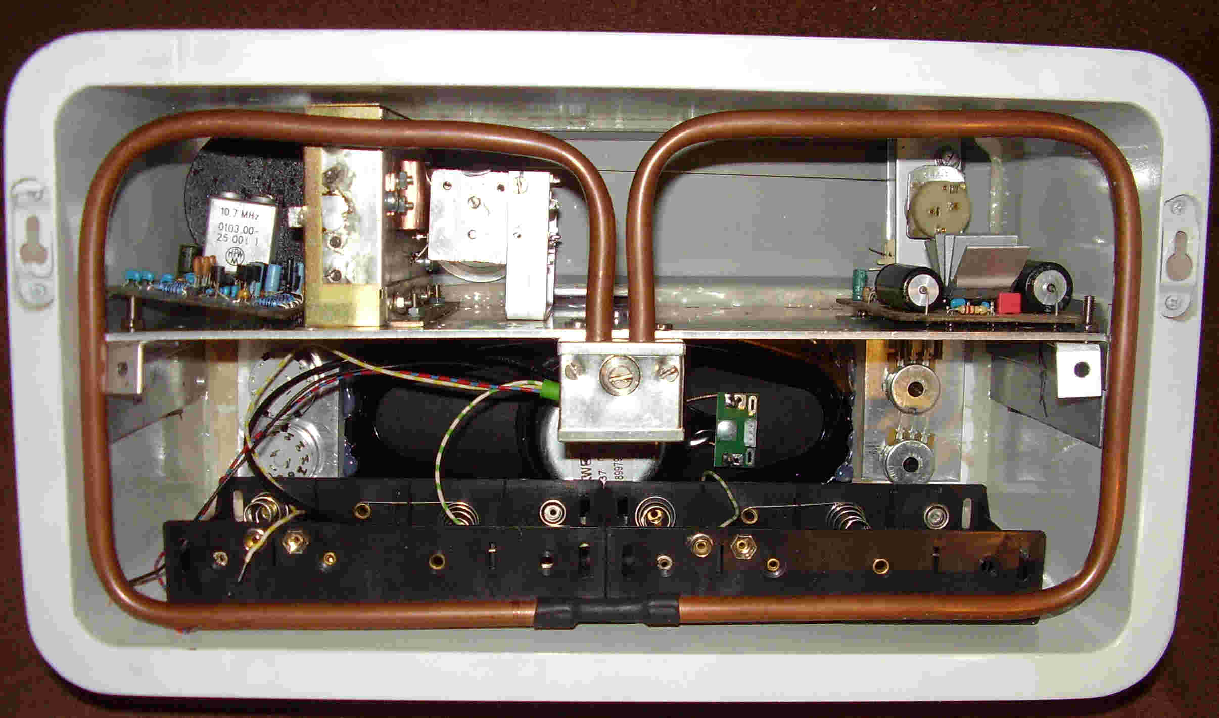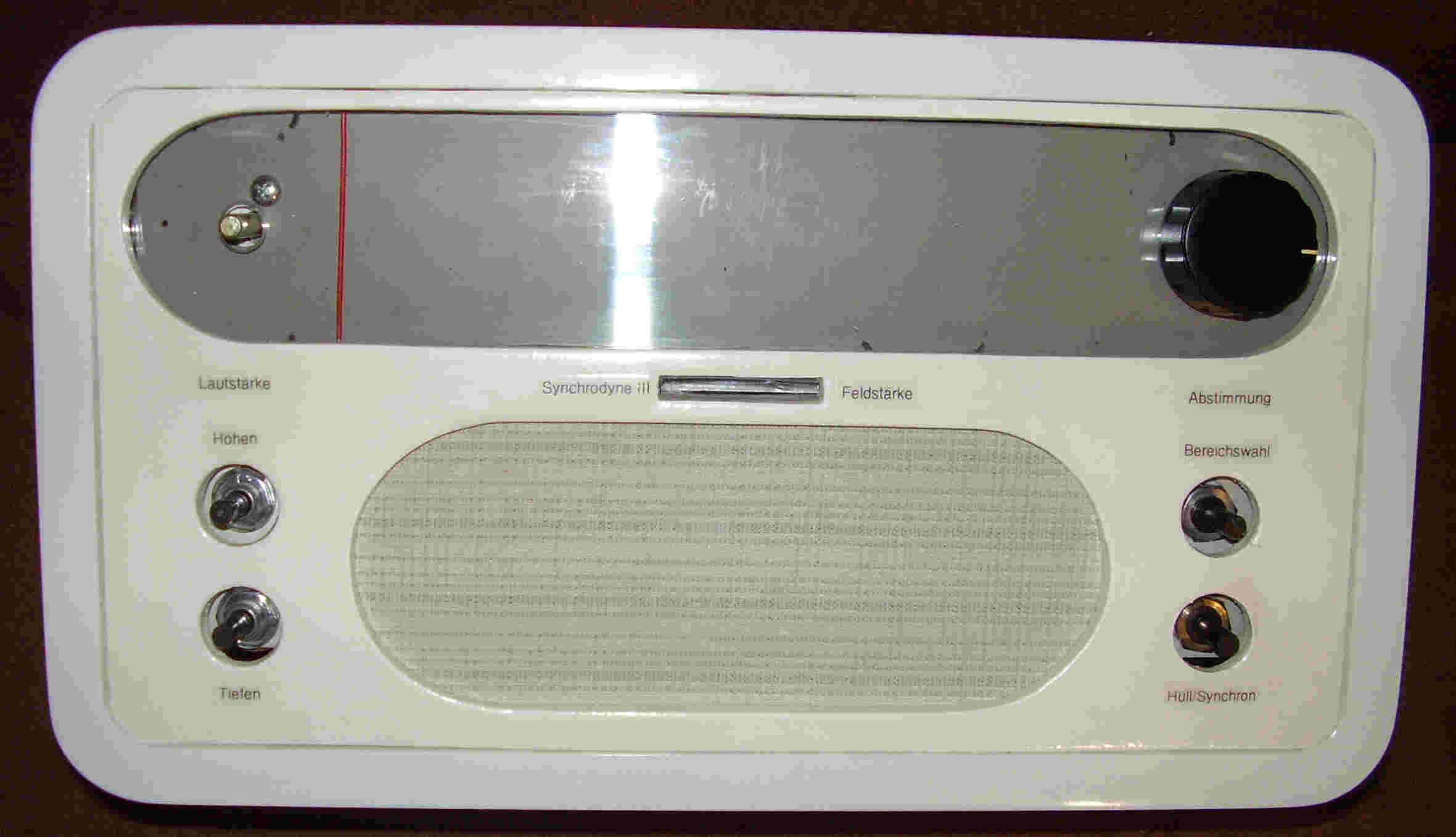Das Gehäuse ist ein von Hause aus weiß lackiertes Regalteil, welches vorn die sichtbare Frontplatte eingepaßt bekommen hat.