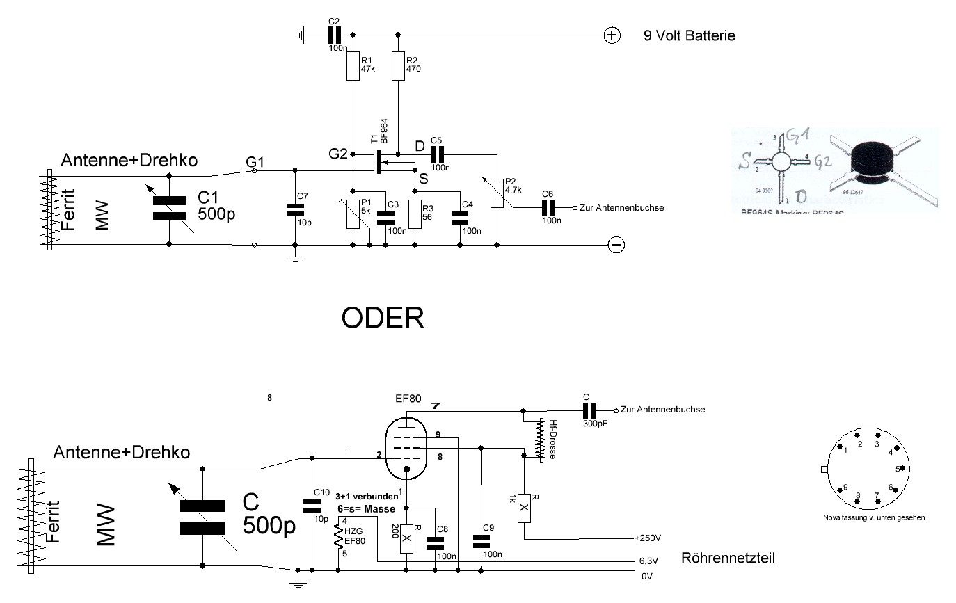 Es ist ein Verstärker, der das Signal von dem Schwingkreis Ferritantenne und Drehko verstärkt. Sinn ist durch die Ferritantenne eine wirksame Ausblendung von Störsignalen zu erreichen. Auch kann eine Röhre EF80 als Verstärker verwendet werden, je nach Bedarf.