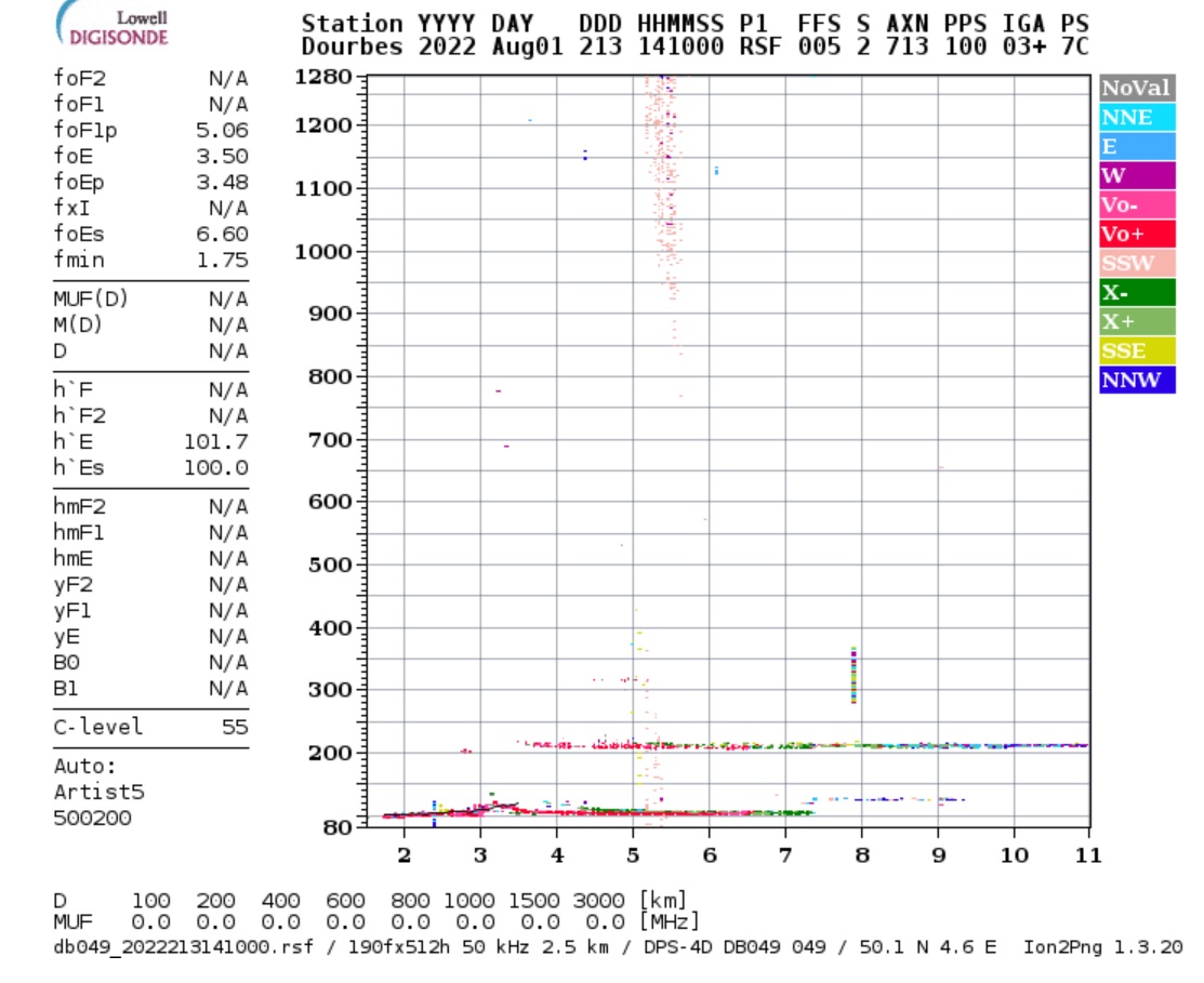 Zur Verdeutlichung, das Ionigramm der Station Dourbes in Süd Belgien vom 27. Juli abends:
