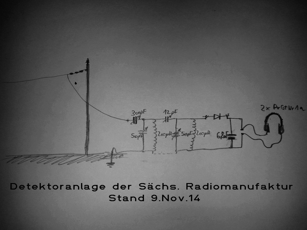Ich möchte jetzt mal meine Detektoranlage vorstellen und immer mal ergänzen etc. Ziel ist es, einen Hochleistungsdetektor aufzubauen. Meine Anlage besteht im Moment aus Antenne, Erde, dreifach abgestimmtem Experimental-Zweikreisdetektorempfänger und den "Zauberohren". Ferner noch ein Referenzempfänger zum Ermitteln der Stationen.