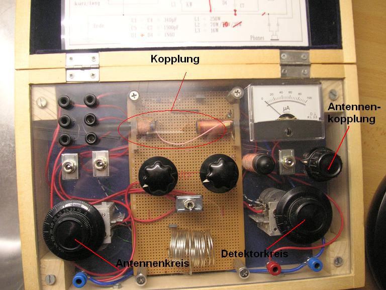 Noch ein Tipp: Du solltest Dir ein Bastelbrett, am besten aus Kunstoff oder Plexiglas bauen. Dann können alle HF-Bauteile einen isolierten Platz bekommen. (Drehkos, Spulen) Hinter der Diode ist das nicht mehr ganz so wichtig (NF), aber das Herz, den Schwingkreis, nicht einfach auf ein Holzbreitt legen. Viele Kleinigkeiten kommen beim Detektor zusammen und entscheiden im Endeffekt über die Qualität und Reichweite des Gerätes.