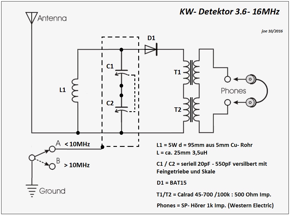 Um die Empfindlichkeit aufrecht erhalten zu können, ist bei dieser klassischen Anordnung die richtige Ankopplung der Antenne entscheidend. Bei einem DX-KW-Detekter, sollte die Antenne für jedes KW-Band optimiert einstellbar sein.