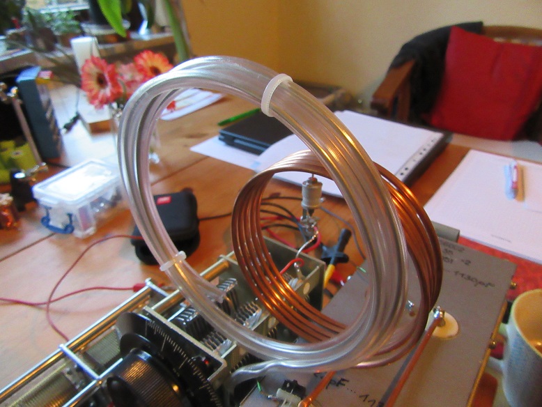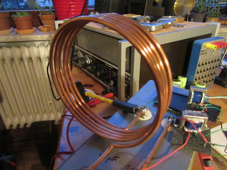 Des Weiteren setzte ich auch eine 6m Zimmerantenne ein. Das funktionierte gar nicht mal schlecht...überhaupt wenn ich dieses KW- Variometer als Anpasser in den kurzen Antennenstrang einfügte.