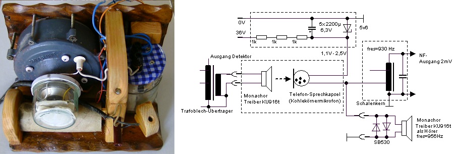 Möglicherweise kann mit einem Selbstbau-Kohlemikro die Empfindlichkeit noch etwas gesteigert werden: https://archive.org/details/radio-und-fe...i%C3%9Fmikrofon Immer wieder erstaunlich, was sich mit so einfachen Hilfsmitteln erzrreichen lässt...