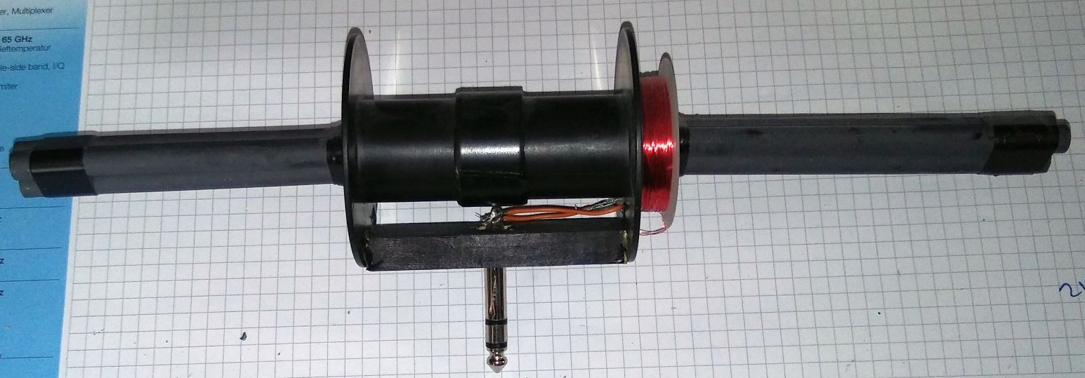 @Walter Wie schon geschrieben habe ich leider nicht alles richtig gemacht, der Abstand der Wicklung zum Kern ist viel zu klein, die Güte entsprechend mäßig und HF Litze wäre sicher die bessere Wahl gewesen, als Volldraht zu verwenden. Die Verlängerungsspule ist aus 0,3mm Cul. wild gewickelt und hat in der gezeigten Position rund 130mH. Mit dem bekannten 3-fach Grundig Drehko (1440pF gesamt) ist das Ganze zwischen 12 und 40kHz abstimmbar. Mit einer Ferritantenne am Detektor SAQ zu empfangen, wäre natürlich ein Erlebnis aber das dürfe mit meiner Konstruktion kaum zu machen sein. Am rückgekoppelten RX hat sie sich allerdings ganz gut geschlagen.
