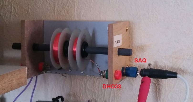 Mit den Ferritstäben lassen sich auch hervorragend Verlängerungspulen bauen. Allerdings ist die Güte höher, die Bandbreite kleiner. So habe ich mich zu einer Umschaltung entschlossen: 215mH für JXN/SAQ und 130mH für DHO38. Der Pegel ist beachtlich gestiegen: -38dBm für JXN und -21dBm für DHO38. Damit sind die Signale im Mittel um 8 dB gegenüber den früheren 4 Luftspulen höher. Das ist schon "detektortauglich". Auf die nächste SAQ-Aussendung bin ich gespannt.