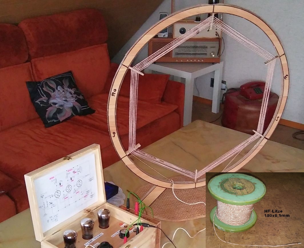 Eine wunderschöne Rahmenspule hast Du gebaut, die gefällt mir außerordentlich gut und sie paßt optisch (und sicher auch elektrisch) perfekt zu dem ebenso schönen Geradeaus-RX. Darf man Näheres zu den Daten erfahren? Mein großer Rahmen ist mit 120x0,1mm Litze bewickelt, er hat ein L von 250µH und ein max. Q von 400 (weiß allerdings nicht mehr, bei welcher Frequenz). Der Windungsabstand beträgt 5mm. Für die Detektorversuche war er in der Tat recht gut geeignet aber ich sehe es auch so - es ist mehr oder weniger obsolet geworden.