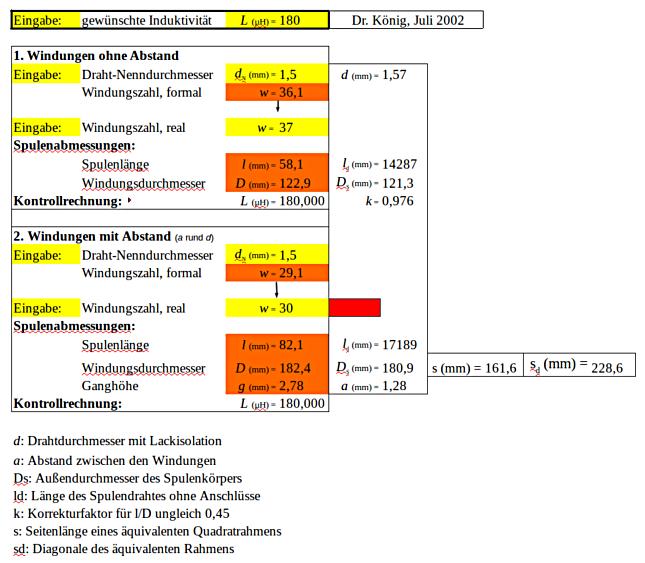 Flaches Polystyrol läßt sich zum Glück noch leicht beschaffen, nämlich als sogenanntes Bastlerglas aus dem Baumarkt. Mir schwebt aber eher eine Zylinderspule vor, die läßt sich vermutlich leichter in ein Gehäuse integrieren, das auch für Portabelbetrieb noch halbwegs handhabbar ist. Nach Dr. Lothar König, mit dem ich vor längerer Zeit in Kontakt war, hat jede Spule in Bezug auf ihr Längen-Durchmesser-Verhältnis ein Optimum und erreicht in diesem Punkt bei einem Minimum an Drahtlänge, ein Maximum an Induktivität und Güte. Dabei spielt auch der Wicklungsabstand eine wichtige Rolle. Das l/D Verhältnis liegt demnach bei rund 0,45 - anbei ein Beispiel für eine 180µH Spule. Wie man sieht, ist die Dimension schon beachtlich, wie erst, wollte man einen großen Rahmen nach diesen Vorgaben bauen.
