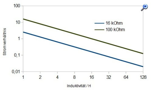Die beiden mal ins Verhältnis gesetzt, abhängig von der Induktivität des Übertragers: