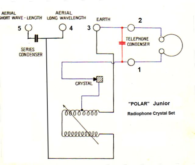 Scheinbar war die Fertigung van einem Variometer einfacher als ein Drehkondensator, mit den vielen Platten, welche eine genaue Ausrichtung benötigen. Man erkennt, dass für die LANG-Schaltung (Antenne an 4) nur die Antennenkapazität wirksam ist !
