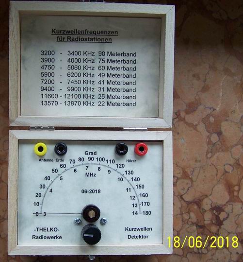 Detektoren, damit haben ja viele von uns angefangen. Ich habe nach langen Jahren auch wieder einen gebastelt, und zwar für die Kurzwelle. Bei Jogi fand ich von Siegfried Neumann einen Bauvorschlag, den habe ich umgesetzt. Eine selbstgewickelte Spule, eine Germaniumdiode AA143, ein ca.320pF Drehko und eine 22Meter Langdrahtantenne. Mein alter Kopfhörer brachte keinen guten Erfolg, als habe ich eine kleinen Verstärker angeklemmt. Der Empfang war beeindruckend, RTI, KBS und CRI waren gut zu hören. hier ein paar Bilder: