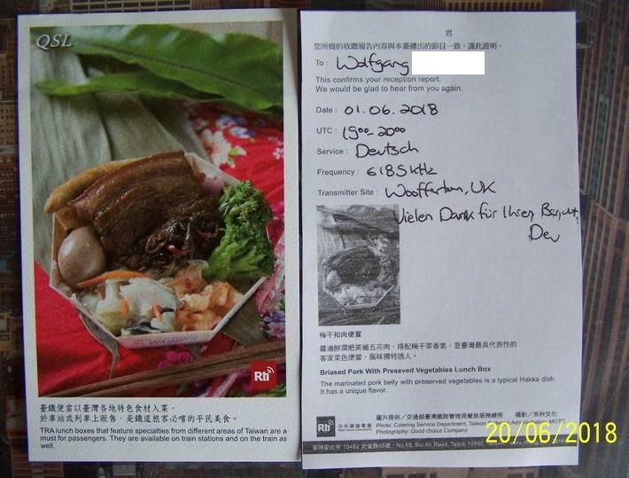 Die erste QSL-Karte von RTI bezog sich auf den Empfang vom 18.05.2018