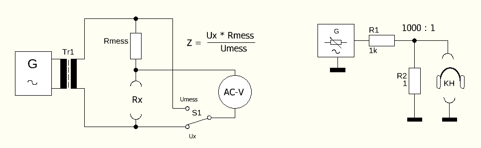 Die Sache mit dem Impedanztest hat mich doch noch etwas beschäftigt. Eher zufällig fand ich im Forum eine wunderbare Beschreibung von HB9 und da ich das noch nie mit dem Oszi praktiziert habe, mußte es natürlich sofort umgesetzt werden. Hat wunderbar funktioniert, nachträglich danke für den sehr interessanten Beitrag, hatte viel Spaß bei der praktischen Umsetzung. Die Differenzen der Meßergebnisse dieser Methode mit der oben angegebenen Formel waren bei meinem Test gering und bewegten sich im Rahmen der Ableseungenauigkeiten des Oszi. Die simple Testschaltung ist offenbar für Amateurbelange ausreichend genau und wenn man über ein hochohmiges AC Voltmeter verfügt, reicht ein einziges aus, das einfach umgeschaltet wird.