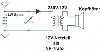 Ps: und du wirst lachen, ich mache den folgenden Versuch: Ferritantenne->Diode->Trafo->Lautsprecher. Die Ferritantenne wird schon zuhause vorher fest auf 177 mit Festwert-C abgestimmt. Mal sehen...
