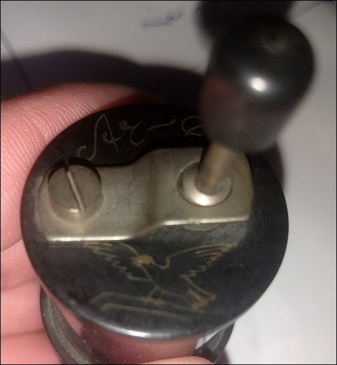 Ergänzung: Ich habe mir heute die Erlaubnis vom Ersteller der Anfrage bei Facebook geholt, hier Fotos des Bauteils zu zeigen. Das Logo des Herstellers zeigt einen Vogel, möglicherweise eine Taube. Vielleicht kennt es ja jemand und kann etwas dazu sagen.