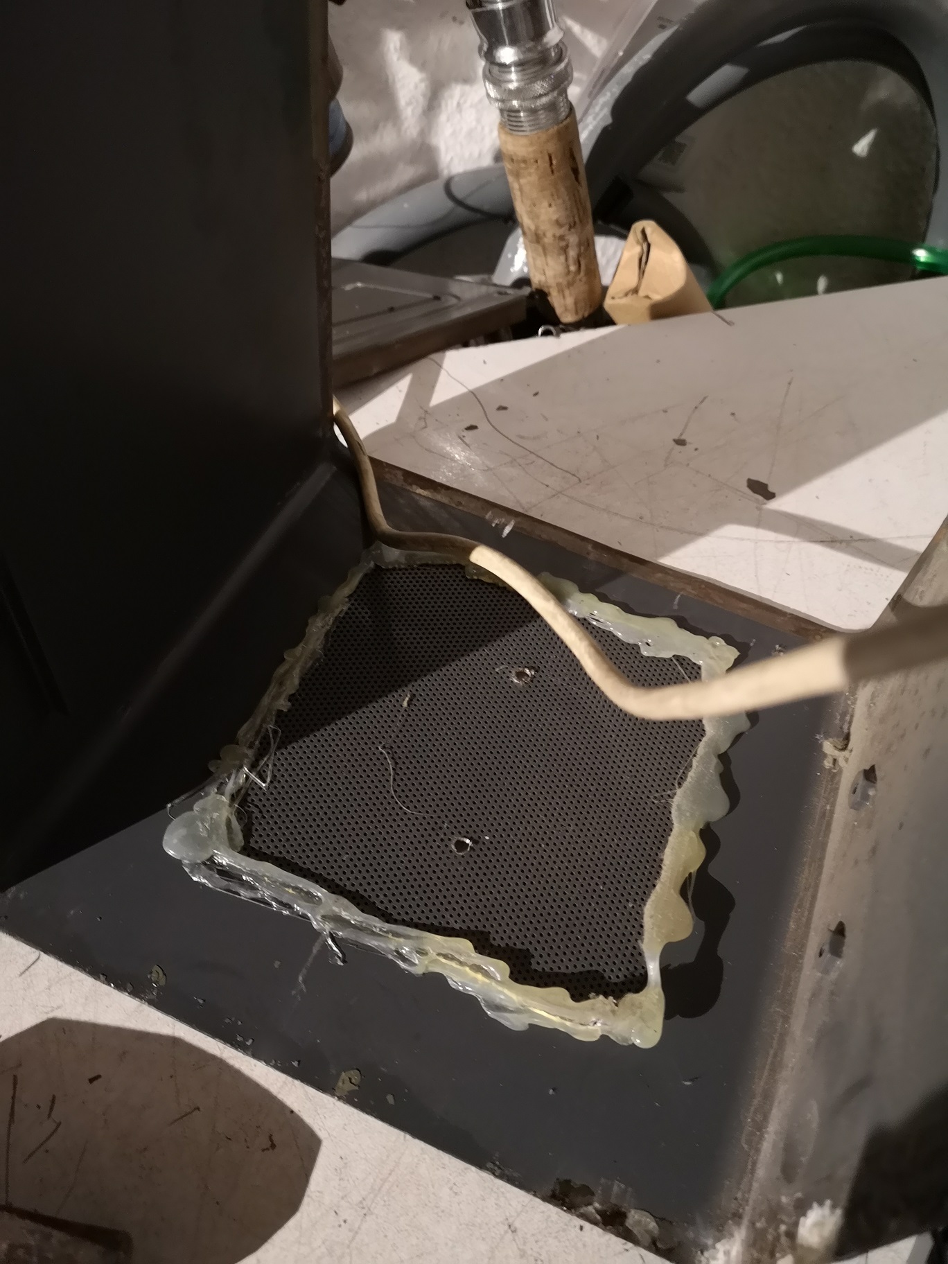 Das Lautsprechergitter ist einseitig lose, deswegen wurde da rumgepanscht, und hat 2 Löcher.