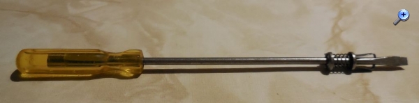 Da es früher kaum oder wenig Magnetschraubenzieher gab, habe Ich schon seit langem Schraubenzieher mit einem ausgebautem Lautsprechermagnet magnetisiert oder Magnete aus Kleinmotoren am Schaft des Schraubenziehers angepeppt. Das mit dem Schlitz in die Klingenmitte, kenne ich auch, um dem Fön meiner Frau vom Haarwickel zu befreien, das sich auf der Motorachse hinter dem "Propeller" aufgewickelt hatte.