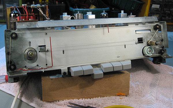 Etwas kniffelig war die richtige Position der Zugfeder, damit der Skalenzeiger seine exakte Position einhalten kann. Ehrlich gesagt drücke ich mich immer vor dem Auflegen der Skalenseile.