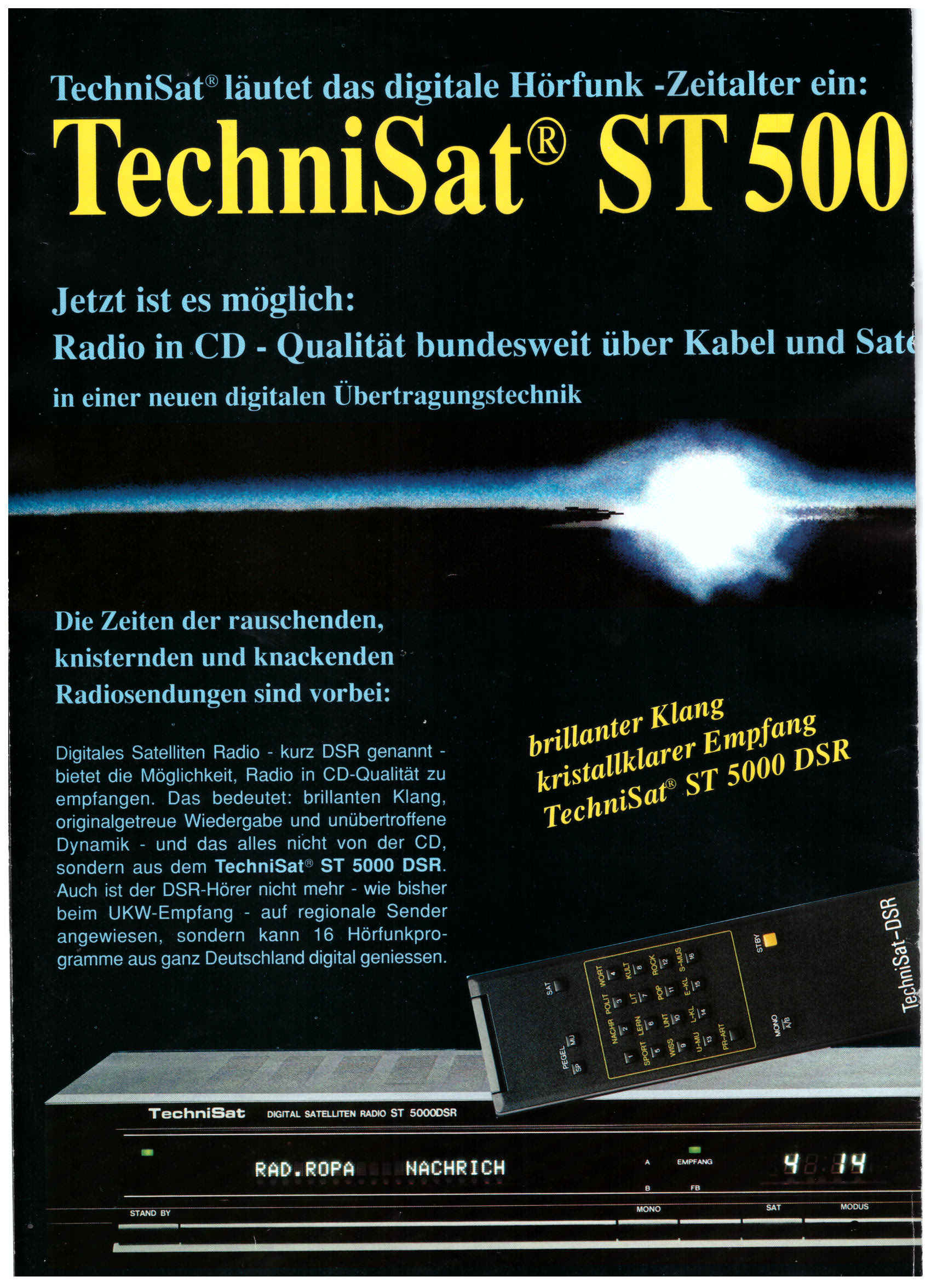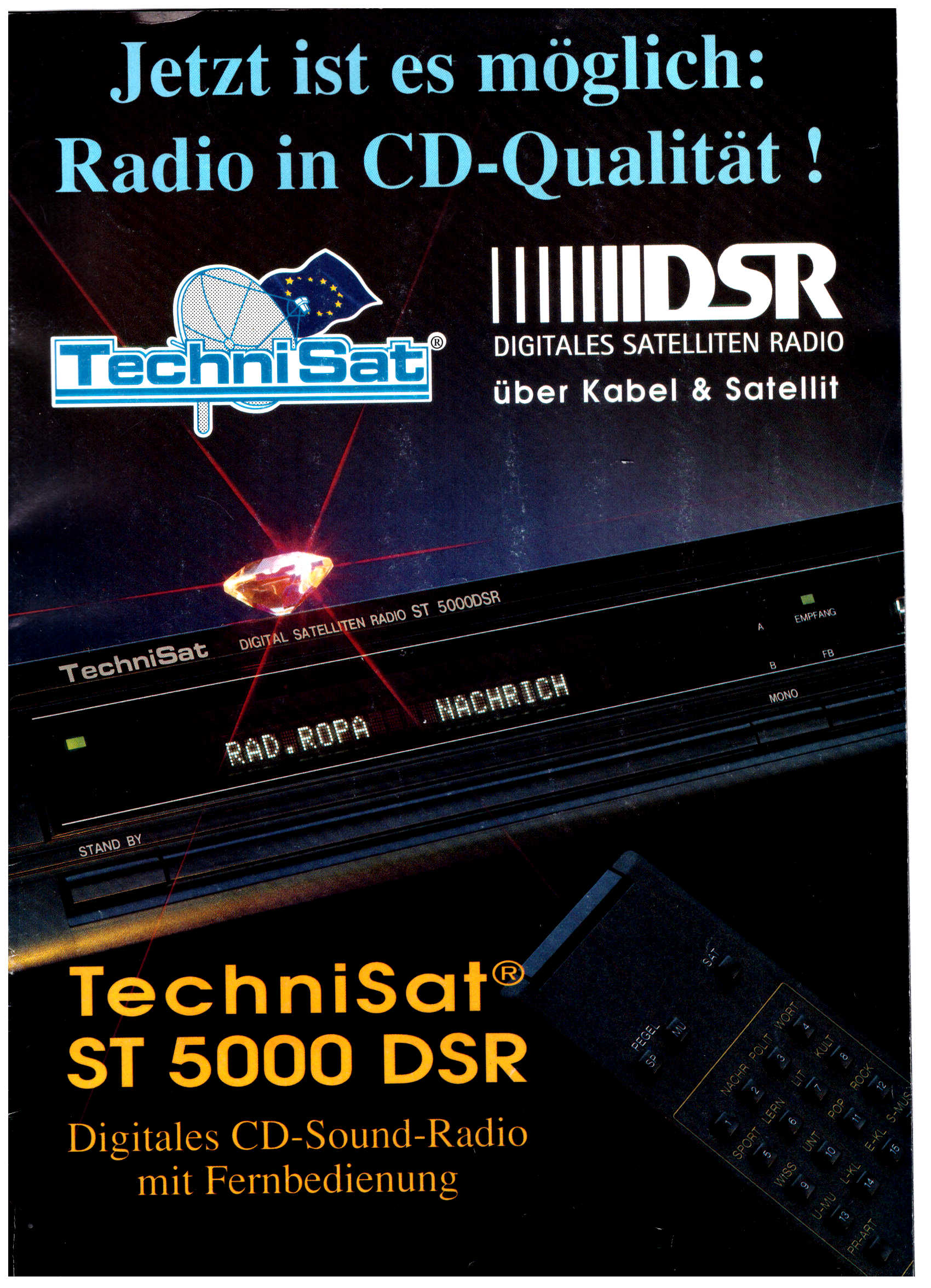 Das Übertragungsverfahren des Digitalen Satelliten Radios wird Anfang der achtziger Jahre von der Deutschen Bundespost in ihrem Forschungs- und Technologiezentrum in Darmstadt entwickelt. Offiziell wird das Digitale Satelliten Radio 1987 eingeführt. Auch in der DDR ist man an dieser Technik interessiert. Die Parteiführung beschließt 1985 die Gründung einer Forschungsgruppe zur Entwicklung von DSR-Empfangsanlagen. Das »Zentrum für Wissenschaft und Technik« des Kombinats Rundfunk und Fernsehen in Dresden erhält diesen Auftrag. 1988 ist das erste Muster produktionsreif. Der westdeutschen Firma TechniSat in Daun (Eifel) bietet die Dresdner Arbeitsgruppe ihr Wissen 1990 an. Es entstehen zwei neue Entwicklungsfirmen: »TechniSat Digital« in Dresden und »TS Interdigital AG« in Ilmenau. Produziert wird in den drei TechniSat Werken in Thüringen, Sachsen und Sachsen-Anhalt. Dass man sich Mitte der 1980er Jahre dazu entschließt, auch in der DDR den digitalen Rundfunk zu entwickeln und damit grenzenlosen Empfang zu ermöglichen, scheint auf den ersten Blick recht erstaunlich. Lange Zeit wird der Empfang westlicher Rundfunkprogramme in der DDR von der Staatsmacht nach Möglichkeit verhindert. Im Angriffszentrum der DDR-Ideologie steht der Berliner Sender RIAS (Rundfunk im amerikanischen Sektor). Mit Zeitungsüberschriften wie »Vorsicht! RIAS spritzt Gift!« oder »Ist eine gute Erziehung mit Westsendern möglich?«, wird vor der schädlichen kapitalistischen Gesinnung gewarnt. Doch die Steigerung der Deviseneinnahmen der DDR hat Vorrang. Der Staat ist an neuer, exportfähiger Technik wie der des Digitalen Satellitenradios sehr interessiert. Die Rundfunkpolitik muss sich diesen übergeordneten Zielen beugen.