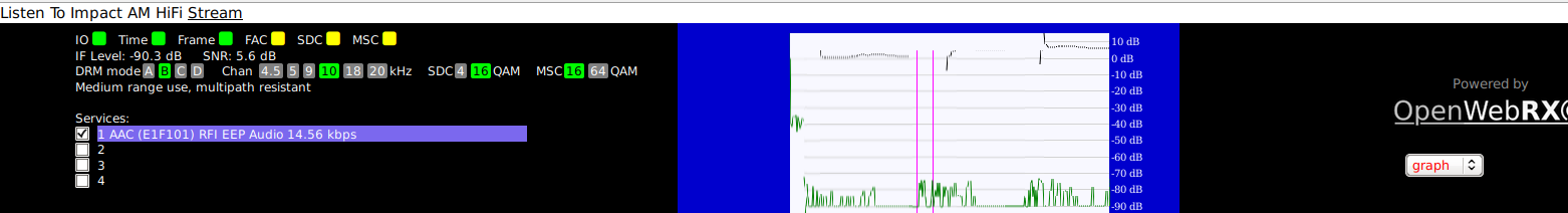 Die von mir genutzten SDRs waren Kiwi-SDRs. DRM egt nur wenn man da alleine ist. Ich habe ja die Grafik angehängt, immer wenn der Pegel niedrig war kam es zum Abbruch. Ich werde aber mal weiter ausprobieren.