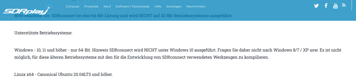 * Es kann durchaus sein, dass SDRconnect auch auf anderen Linux-Distributionen läuft, dies sind nur die unterstützten Distributionen.