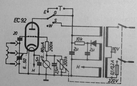 u.A eine Oszillatorschaltung (in Stellung G und S) und der Spulenwechsel für verschiedene Frequenzbereiche.