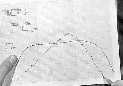 Die Sicht auf den Schaltbildteil ist mir zu zippelig. Jedenfalls deute ich die beiden Kurven als Durchlasskurvenvergleich, wobei die schmalere eine unsymmetrische Dreieckform (ähnlich dem Quatzfilter) hat.