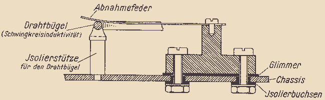 Zur Lösung: es handelt sich um A. Bei UKW Oszillatoren mit einer induktiven Spannungsteilung konnte das Spannungsverhältnis über einen Schleifer auf dem Bügel der Drahtschleife eingestellt werden. Die Erdung des Schleifers erfolgte über eine großflächige Kapazität, hier über Glimmerschicht, gegen Masse. Diese Verbindung wurde in der Fachsprache (eher Fachjargon?) Verklatschung genannt. Quelle: Schiffel/Woletz, Prüfsender für UKW Empfänger, Teil 1, RPB Heft 17, Franzis Verlag, München, 1954