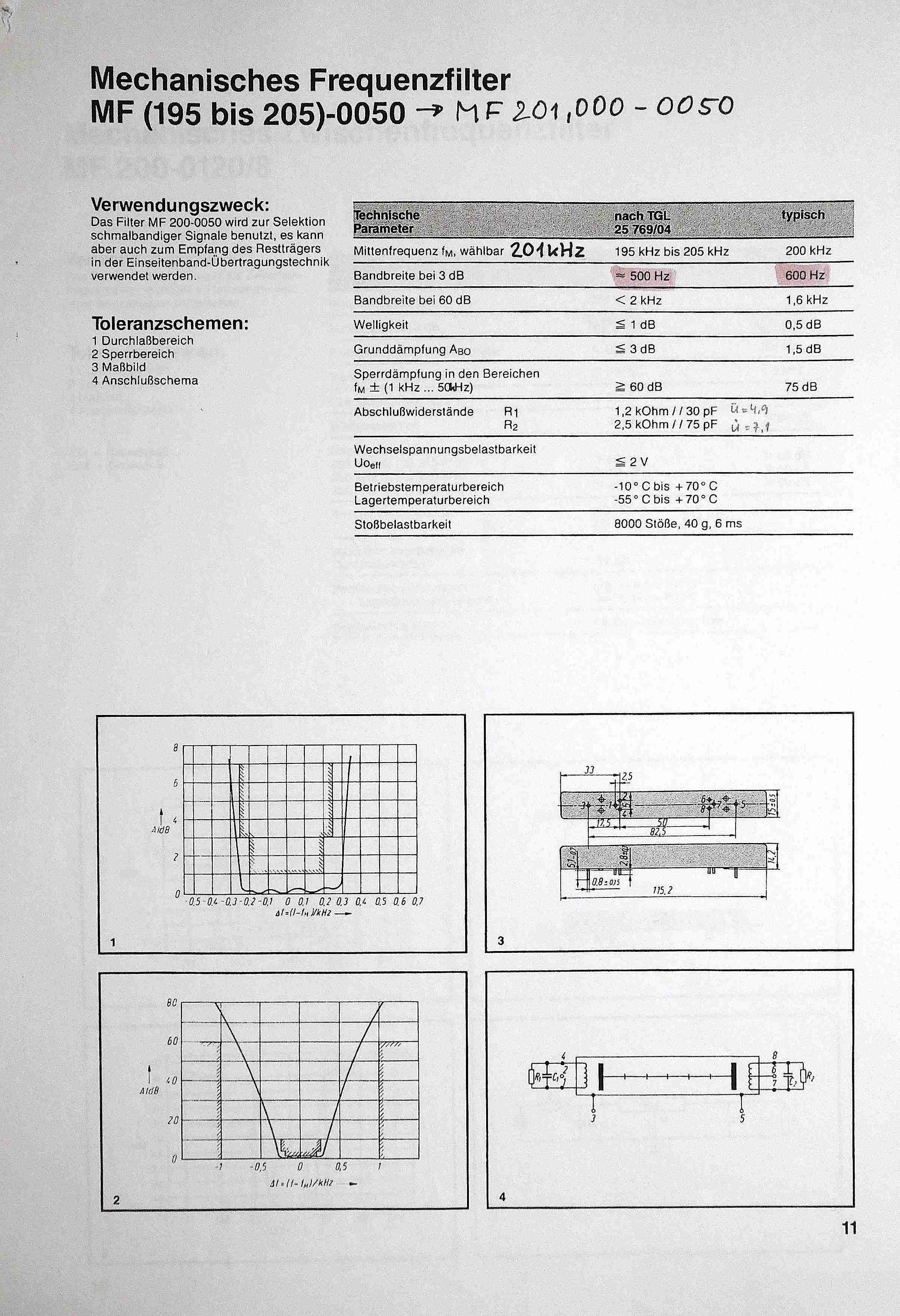 Mechanische Filter RFT 200/201 kHz abzugeben - bereits verkauft!