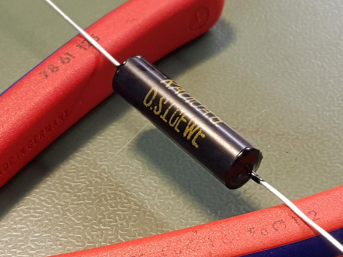 Nachdem ich bzgl. den Kondensatoren noch eine Idee hatte, habe ich mir den 5000 cm Kondensator nochmal vorgenommen. Notwendig ist es nicht, aber dieser scheint ja der am kritischsten zu sein (abgesehen von den Blockkondensatoren).