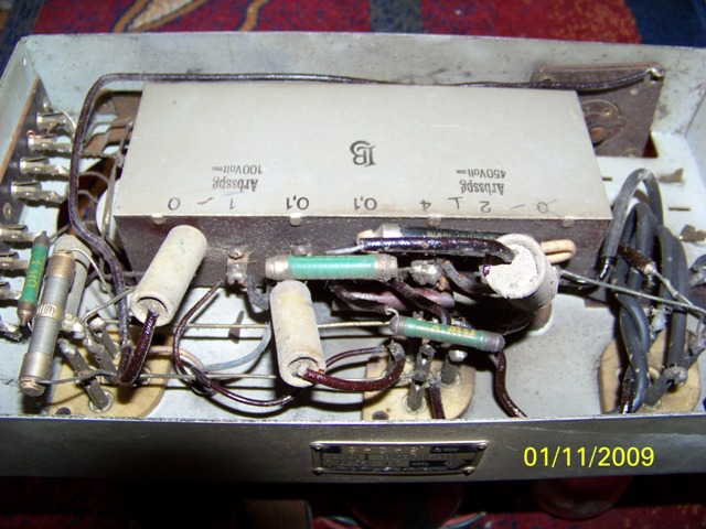 der Trafo liefert die Spannungen. Also werde ich das 301W Chassis restaurieren. Eine Frage zum Kondensatorblock. Auf dem Kondensatorblock sind mit Bleistift Symbole aufgemalt. Masse ist, laut Bleistift Symbole, an einem anderen PIN. Die Röhrenkondensatoren (einer hängt in der Luft) sind wahrscheinlich nicht original. Laut Ohmmeter sind der rechte PIN (0 laut Originalbeschriftung) und der linke PIN (ebenfalls 0 laut Originalbeschriftung) nicht miteinander verbunden. Hast du ein Bild, wie ein 301W Original aussieht? Zwischen welchen Pins werden welche Kondensatoren eingelötet? Werden die Pins links 0 und rechts 0 miteinander verbunden?