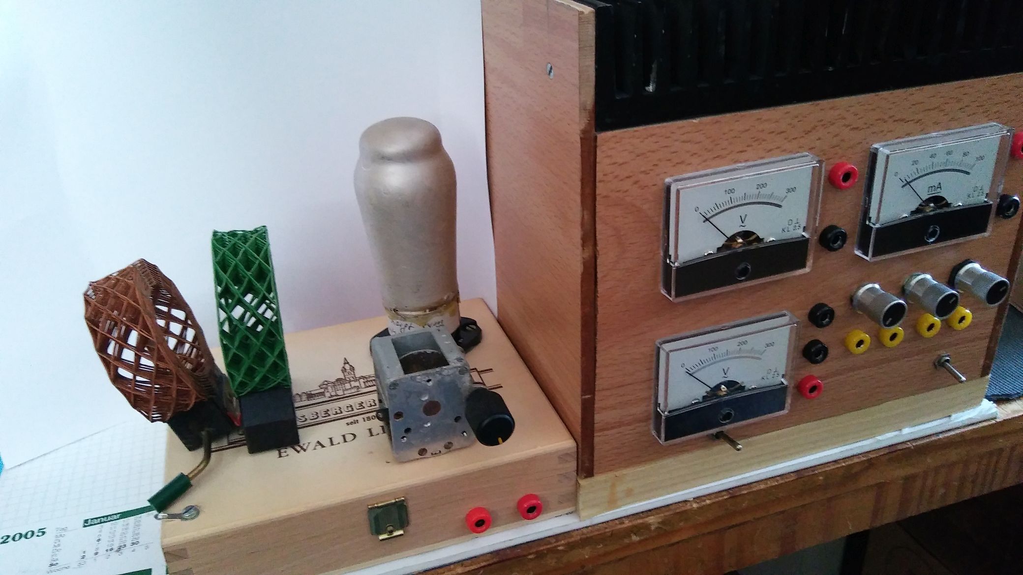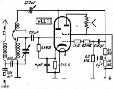 Bekanntlich ist die VCL11 eine schwingfreudige Röhre. In der Original-Ratheiser Schaltung schwangen ALLE meiner VCL11, auch bei einer Anodenspannung von nur 90 Volt. Diese habe ich der Einfachheit gewählt, um Heizung und Anodenstrom aus einem Netzteil zu versorgen. Auch habe ich auf ein Metallchassis, Schirmungen und eine Rückkopplung verzichtet.